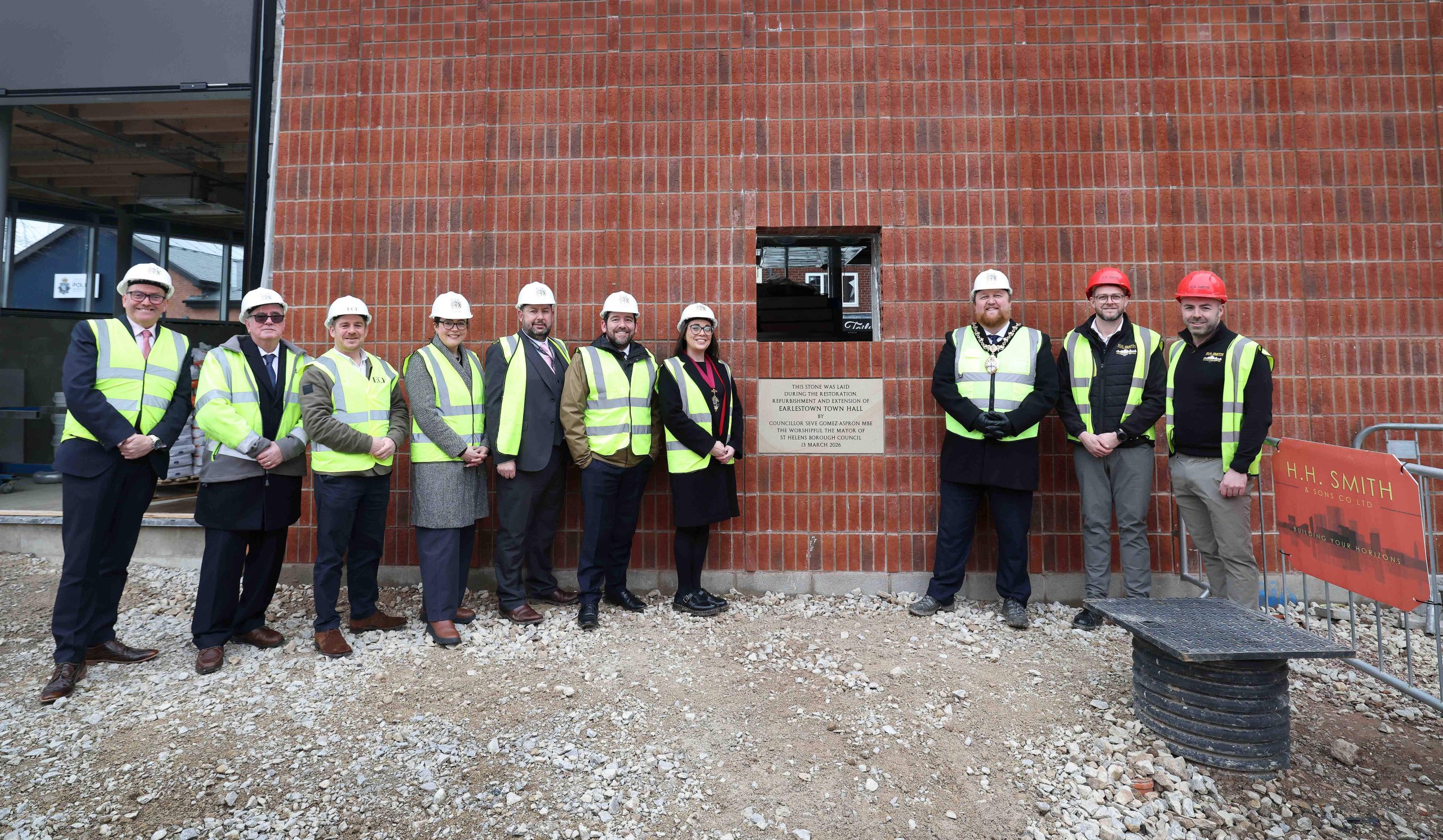 A commemorative Date Stone has been laid to mark the construction of the new extension to Earlestown Town Hall, marking a significant moment in the restoration of one of Newton-le-Willows’ most iconic and much-loved buildings.